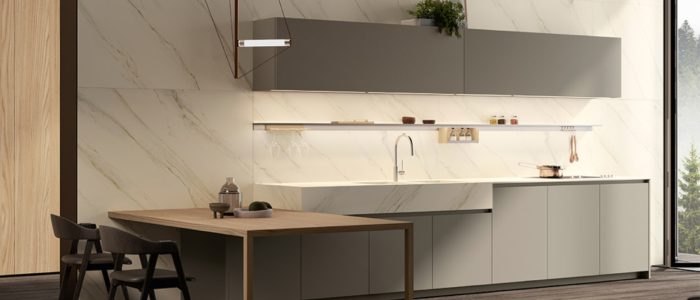 The "Sign" collection interprets the kitchen as an extension of the living area, creating a space that is both functional and emotionally impactful, with a strong focus on materials and a mix of elegant colors. With its range of innovative features, including stylish doors, convenient sliding worktops, shelving partitions and integrated cooking zones, the "Sign" collection offers a range of high-end options that seamlessly blend practicality and sophistication.