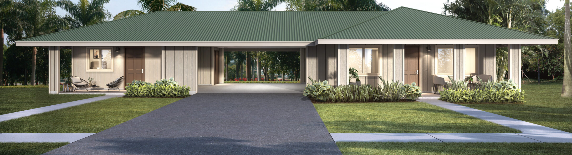 You'll love coming home to the Kamole, a ranch-style, three-bedroom home that features a primary bedroom with a private lanai separate from the main area of the house. The house's main area includes two bedrooms, a full bathroom, an efficient kitchen layout, and a spacious living and dining area with its own lanai.