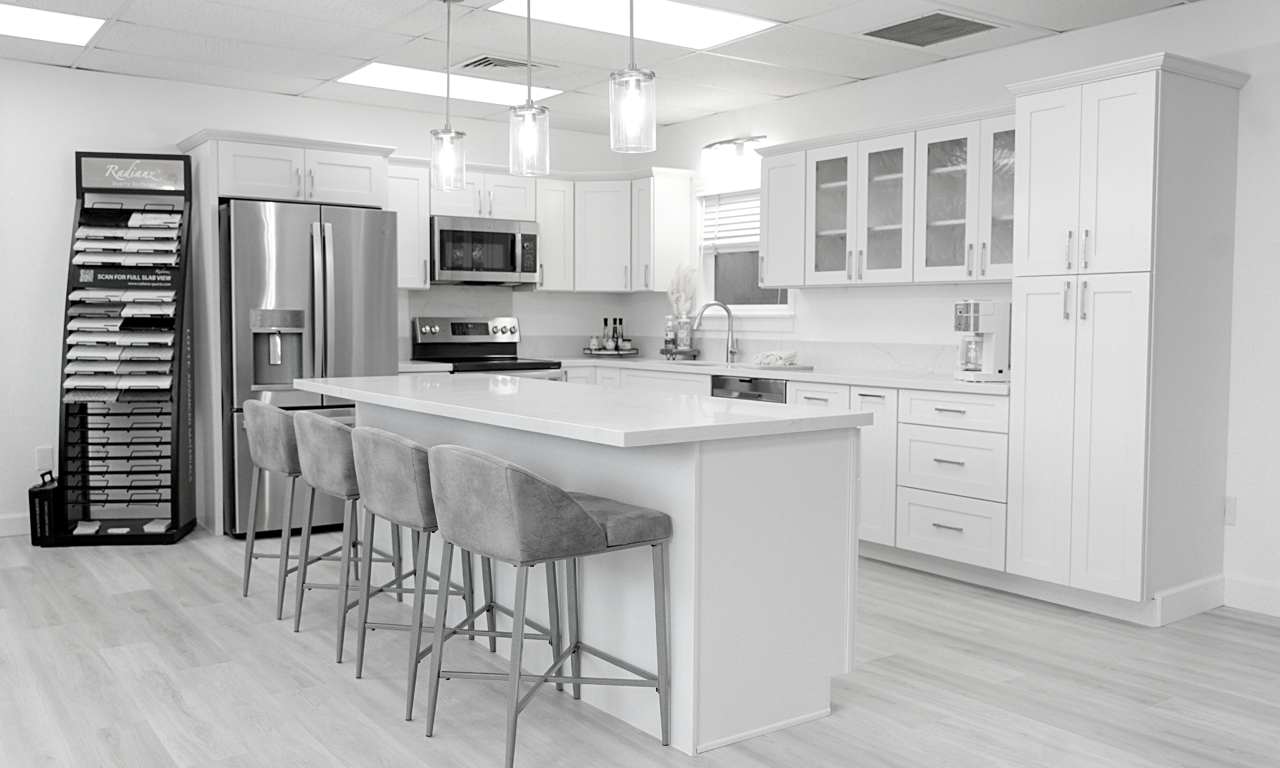 Invest in high-quality materials that can withstand the workload of a functioning kitchen. Cabinets, countertops, and flooring are the most important decisions you'll make for materials, so take samples home to see what they look and feel like in your space and lighting at home vs. in the showroom.