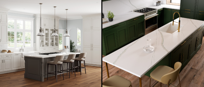 *Purchase must include a minimum of 10 cabinet boxes. Maximum savings of $5,000. **Savings applies to custom slab material only. Must be purchased with fabrication and installation. Discount does not apply to pre-fab material, costs due to shipping, handling, and/or fabrication. Savings vary depending on color.